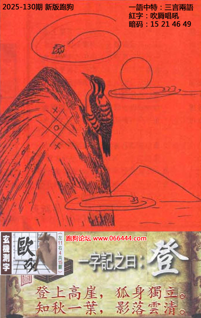 130期新版跑狗一字記之曰:【登】