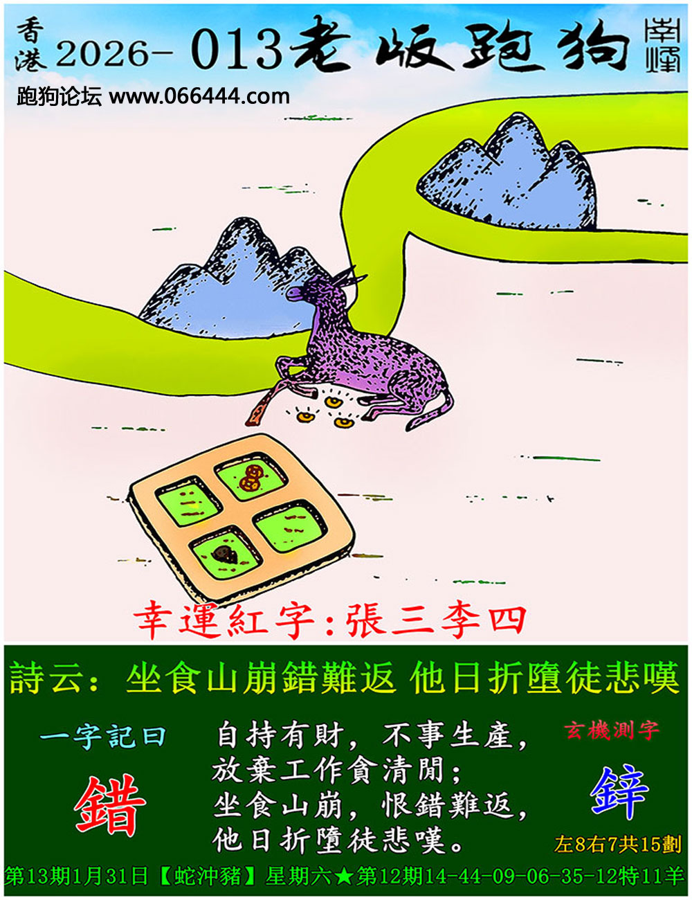 013期:跑狗玄機/密圖詩/粤彩三语/特碼歇后语/正另版梅花诗 跑狗出版社
